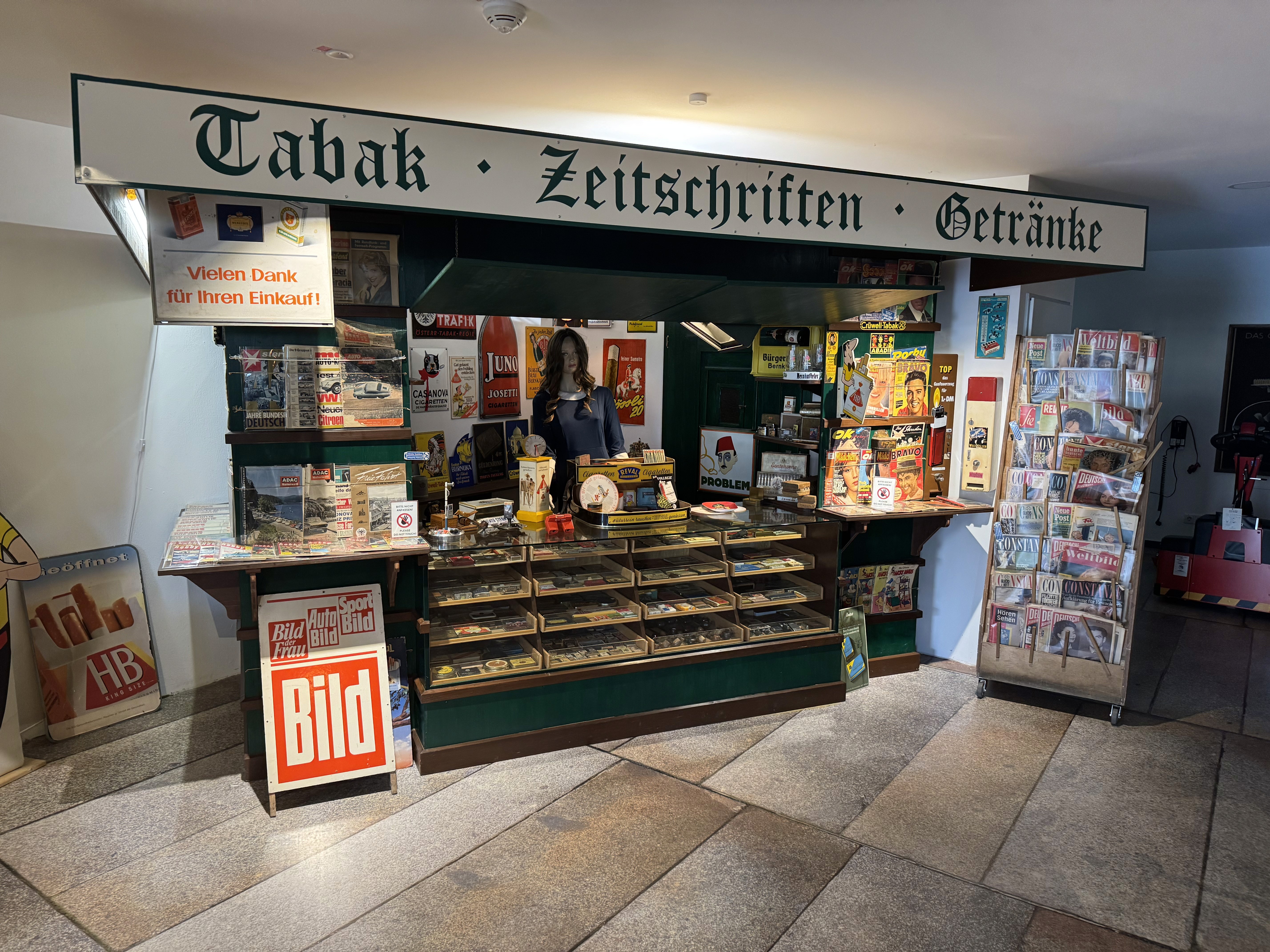 Eine historische Ladenzeile mit Technikgeschäften, Zeitungsshop, Kolonialwarenladen, Apotheke und vielem mehr, vermittelt das Lebensgefühl vergangener Jahrzehnte.